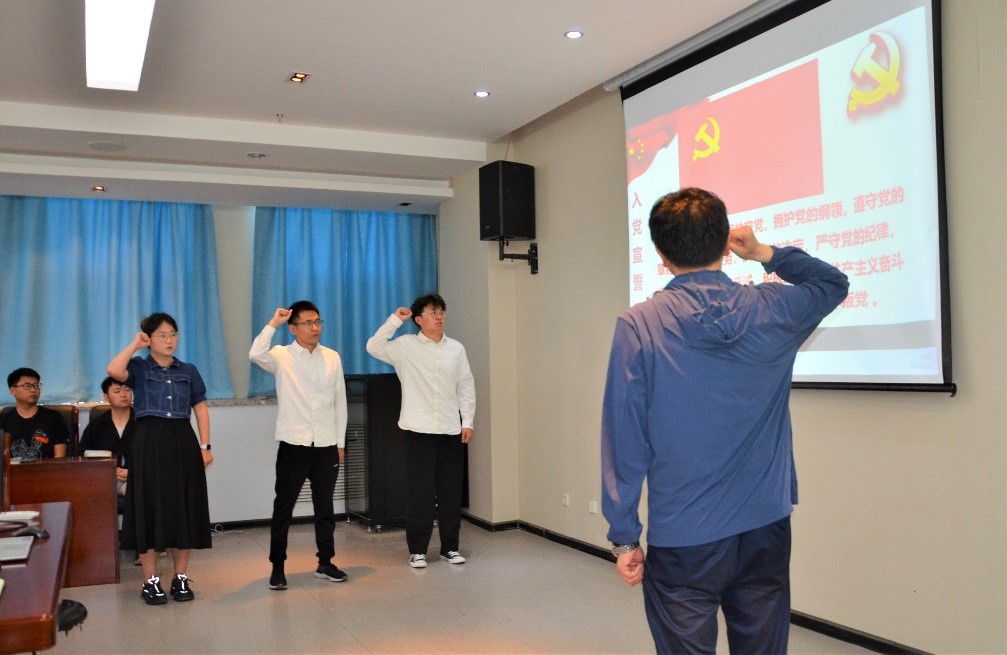 马薇同志对预备党员接收程序进行了说明。程洵等3位同志分别宣读转正申请,汇报自己对党的认识,陈述入党动机及自身表现,主要优缺点及需向党组织说明的有关问题。3位同志的入党介绍人分别介绍了他们在成为发展对象之后的表现,认为3位同志各方面表现合格,愿意介绍3位同志入党。3位同志回避,经支部大会讨论后,与会的23名正式党员依次进行投票表决,并由马薇同志宣读表决结果:全体党员一致同意接收程洵、施袭纯、孙博康3位同志为中共预备党员。之后3位同志返回会场,在支部书记何力军同志的带领下,面向党旗庄严宣誓。宣大家对新同志表示了热烈的祝贺,3位同志依次作了表态发言。