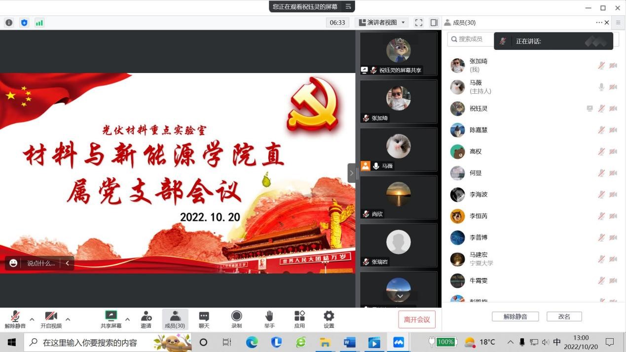 2022年10月20日下午,学院通过线上的形式召开直属党支部党员会议,会议由直属党支部组织委员马薇同志主持,学院全体党员、预备党员参会。