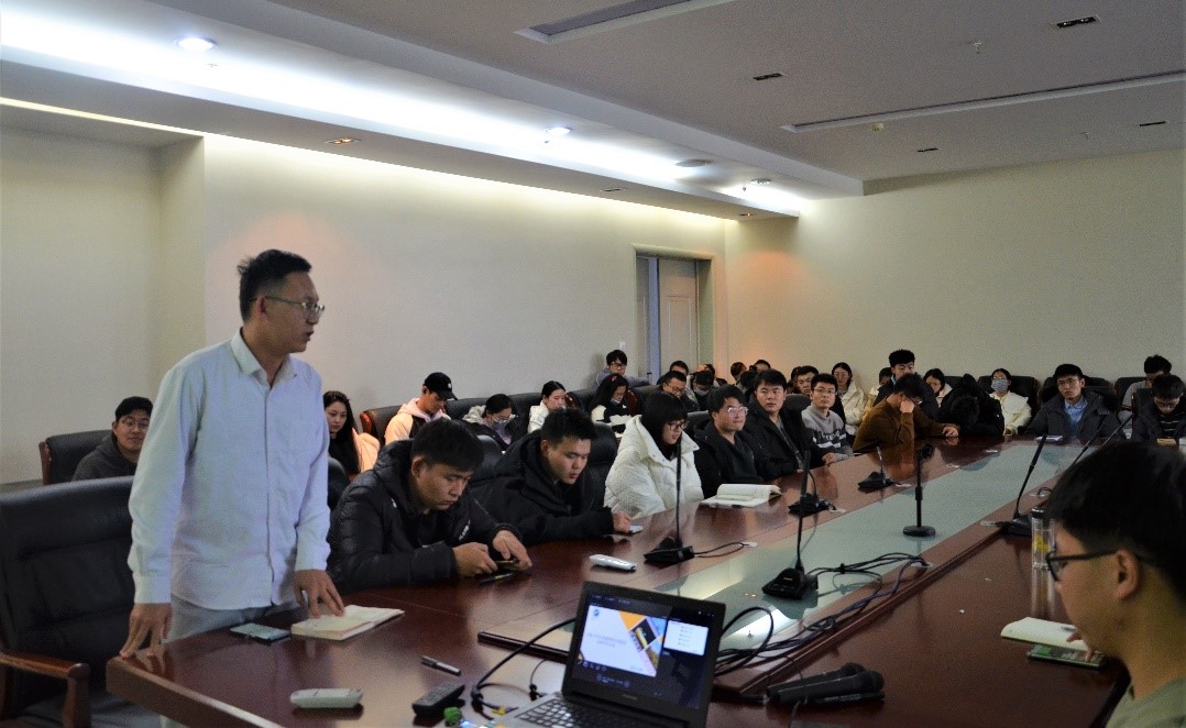 郭明轩同学讲到,研究生分会在过去一年的工作中,较好地完成各项工作,包括:与实验室团支部一起,向实验室党支部推选多名入党积极分子和发展对象候选人;吸收多名先进分子加入党组织;疫情期间配合学校做好疫情防控工作的同时,重视同学们的心理健康教育,通过线上趣味运动会等形式调动封闭期间同学们的积极情绪,向实验室建议,为同学们购置分发防疫用品;认真听取同学们的建议,开展四六级培训和学术交交流会等,营造良好学习氛围等。同时也存在诸如团队分工不够明确、备份工作不够到位等不足之处,希望下届分会成员能够改进不足,把实验室学生自我管理工作推向更高水平。分会其他部门成员也依次进行了工作总结。