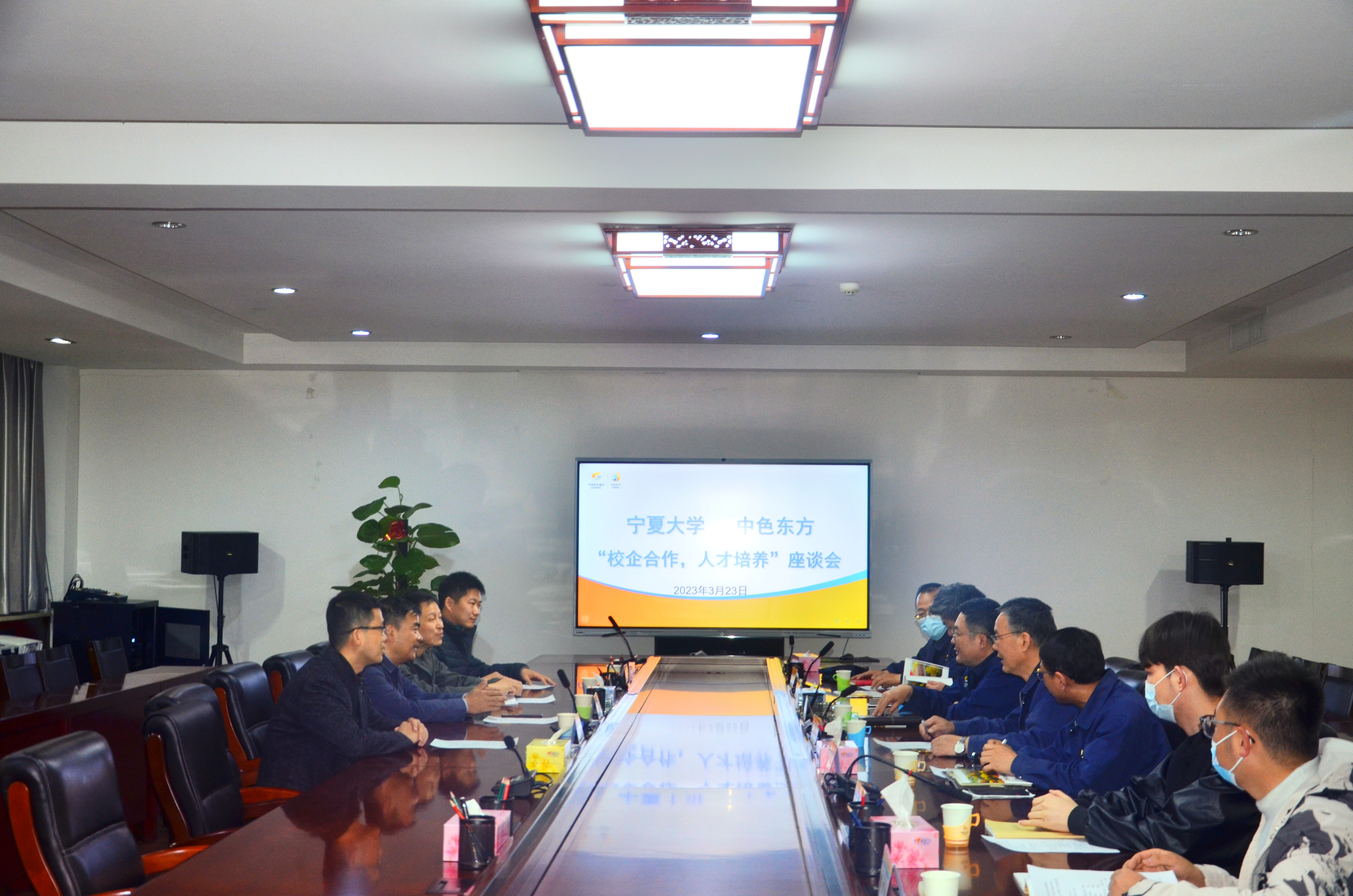 在中色(宁夏)东方集团有限公司,公司党委委员、副总经理焦红忠,科技质量部部长白轶明,稀有金属特种材料国家重点实验室常务副主任罗文,钽铌特种材料工程技术中心主任程越伟,人力资源部部长吴晓忠,就企业招聘需求和岗位待遇、研究生联合培养、校企合作创新、实验室建设等议题与学院进行了探讨;在天通银厦新材料有限公司,公司副总经理康森,人事部长陈逸,人事经理刘念,也就相似议题与学院进行了交流。
