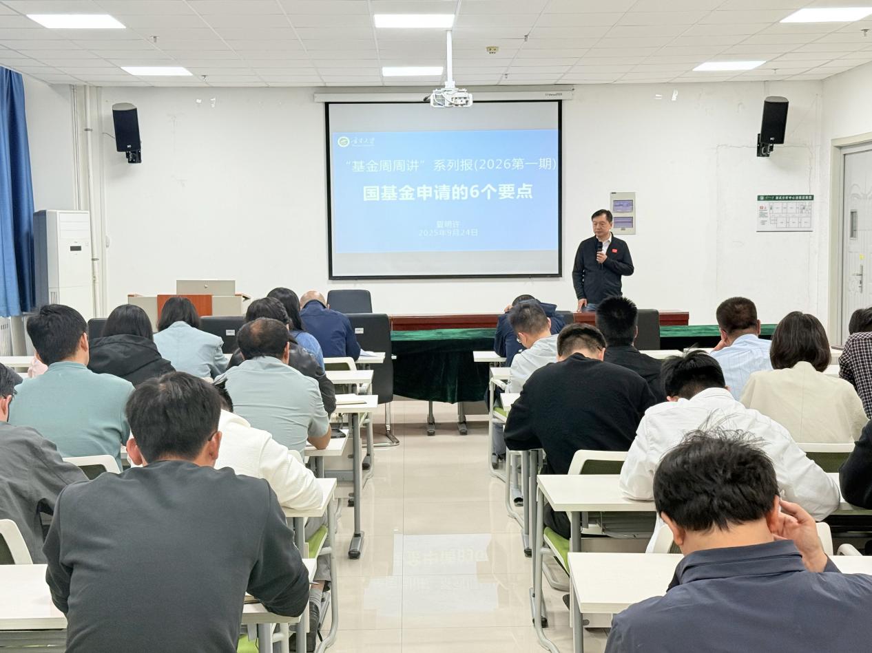 夏明许围绕“国基金申请的6个要点”为与会教师明晰申报方向、提升申报质量进行指导。他指出,地区基金需对接区域经济需求,主攻应用基础研究,突出地域特色;青年基金应聚焦前沿小切口,合理设定研究边界;研究目标、内容与技术路线等要做到逻辑自洽,同时要注重申报材料格式、排版等细节。指导后,夏明许就基金类型衔接、申报材料修改等现场提问进行了解答。
