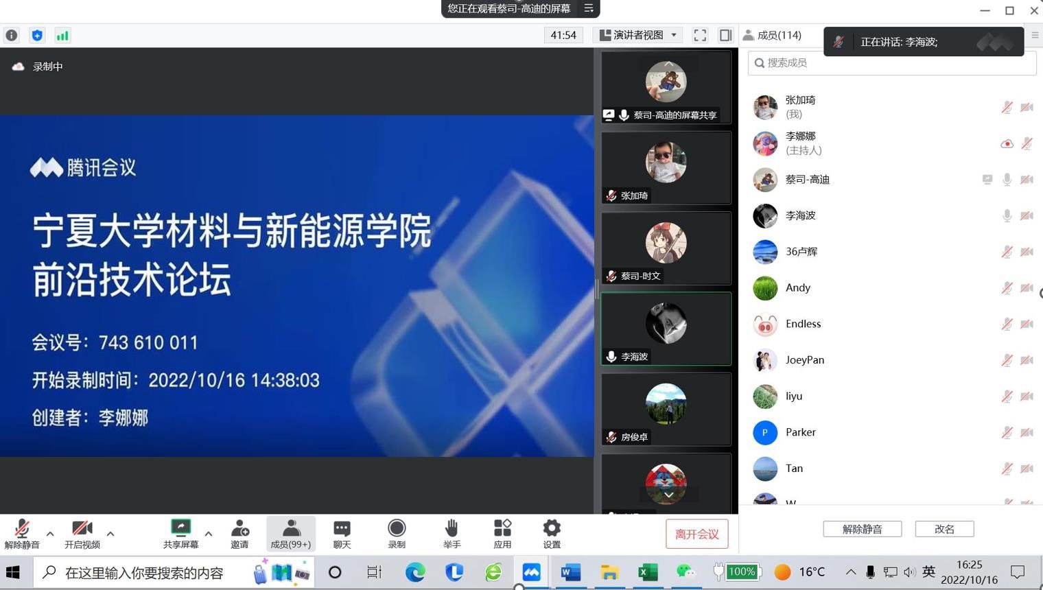 2022年10月16日下午,学院通过线上形式举办了主题为“材料、能源、生物原位分析技术与方法介绍”的“前沿技术”论坛,论坛由李海波副院长主持,蔡司集团显微镜部应用技术主管高迪、应用专家韩冰、时文主讲,学院全体师生参加。报告吸引了全国多所高校相关专业师生。