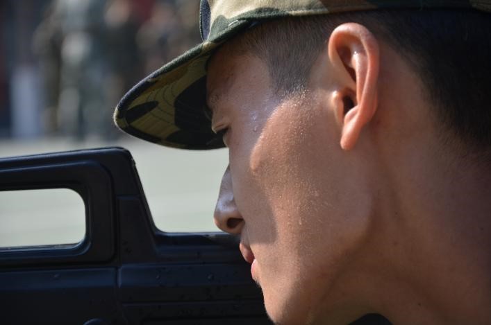 闻听得诗朗诵气势磅礴,动人心魄;军歌声涌如排浪,起伏张扬!第一排战士边唱边挥舞着红旗,令行禁止,动作如一。