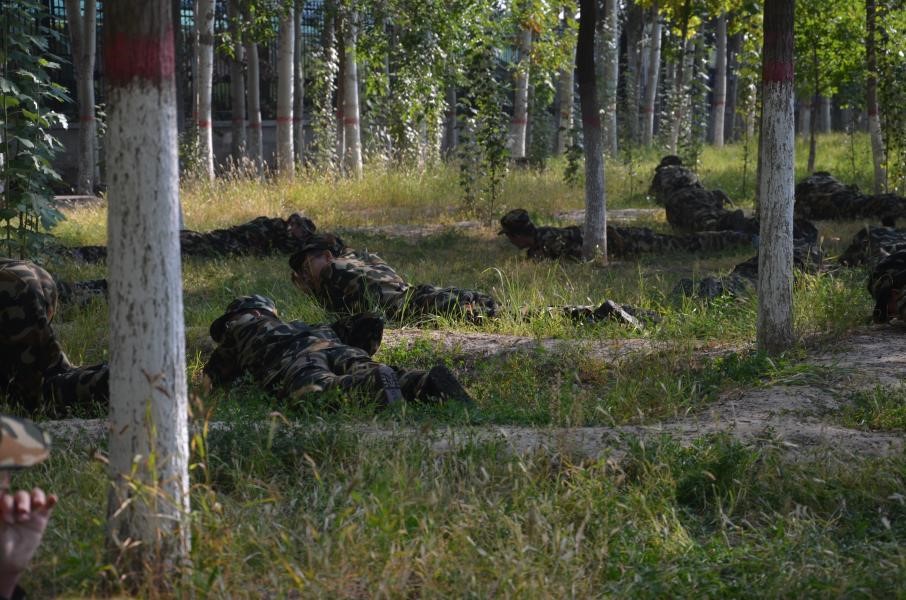 苦不苦,想想长征二万五;累不累,想想革命老前辈!一路上,我们相互鼓励,相互搀扶,先后经过防空袭,防生化演练,以及口令传递训练。同学们或突然迅速卧倒,或迅速掩住口鼻通过烟雾区,在激动兴奋中,勇往直前!